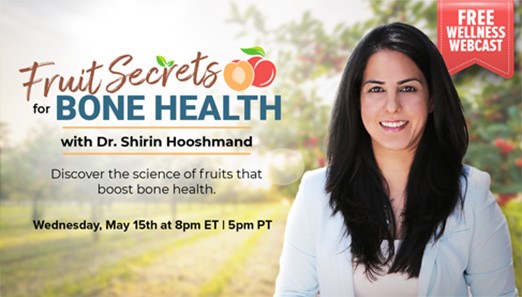 In our upcoming wellness webcast, Fruit Secrets for Bone Health, Dr. Shirin Hooshmand, a celebrated Registered Dietitian and Professor of Nutrition, will shed light on this tasty topic.