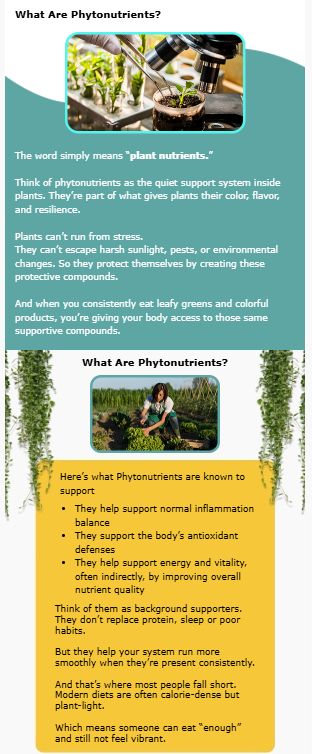 These are the protective helpers plants make to survive sunlight, stress, and the environment. And when we eat plants, we also benefit from them. They’re called phytonutrients.